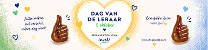 Verras een leraar, docent of onderwijsteam op een originele en smaakvolle manier met onze chocolade duimpjes. Een klein gebaar met een grote betekenis: een welverdiend compliment voor hun inzet, geduld en dagelijkse betrokkenheid.