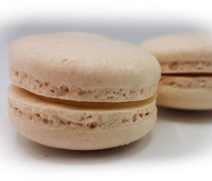 Deze macarons kunt u per stuk bestellen. De kleur is lichtcreme. De smaak van romige gezouten caramel in een heerlijke macaron die een kleine bite heeft maar daarna heerlijk smeuïg wordt. Soms is het gewoon te lekker. Deze gezouten caramel macarons worden gemaakt door een hele goede Belgische patissier. Niet te vergelijken met macarons uit de supermarkt. Ze zijn verpakt in een simpele maar goede verpakking om de kosten te sparen.